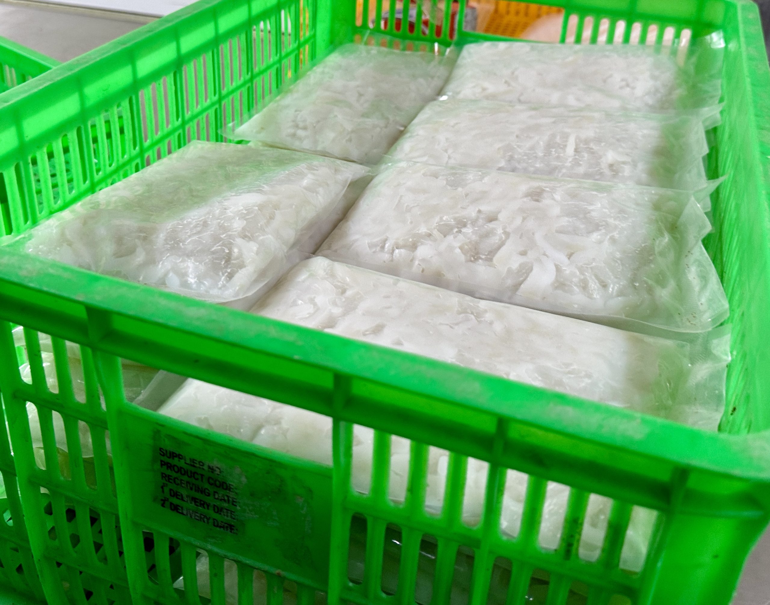 Chỉ thân mực được sử dụng để chế biến thức ăn cho tôm bố mẹ, giúp cung cấp nguồn dinh dưỡng tinh khiết, giàu protein và axit béo thiết yếu. Mực được cắt sợi nhỏ với kích thước phù hợp để tôm bố mẹ dễ tiêu hóa và hấp thụ tối đa dưỡng chất. Sau khi cắt sợi, mực được đóng gói túi 500 gram, bảo quản ở nhiệt độ -20°C và giao tới trại giống trong điều kiện đông lạnh, đảm bảo chất lượng sản phẩm luôn tươi ngon.